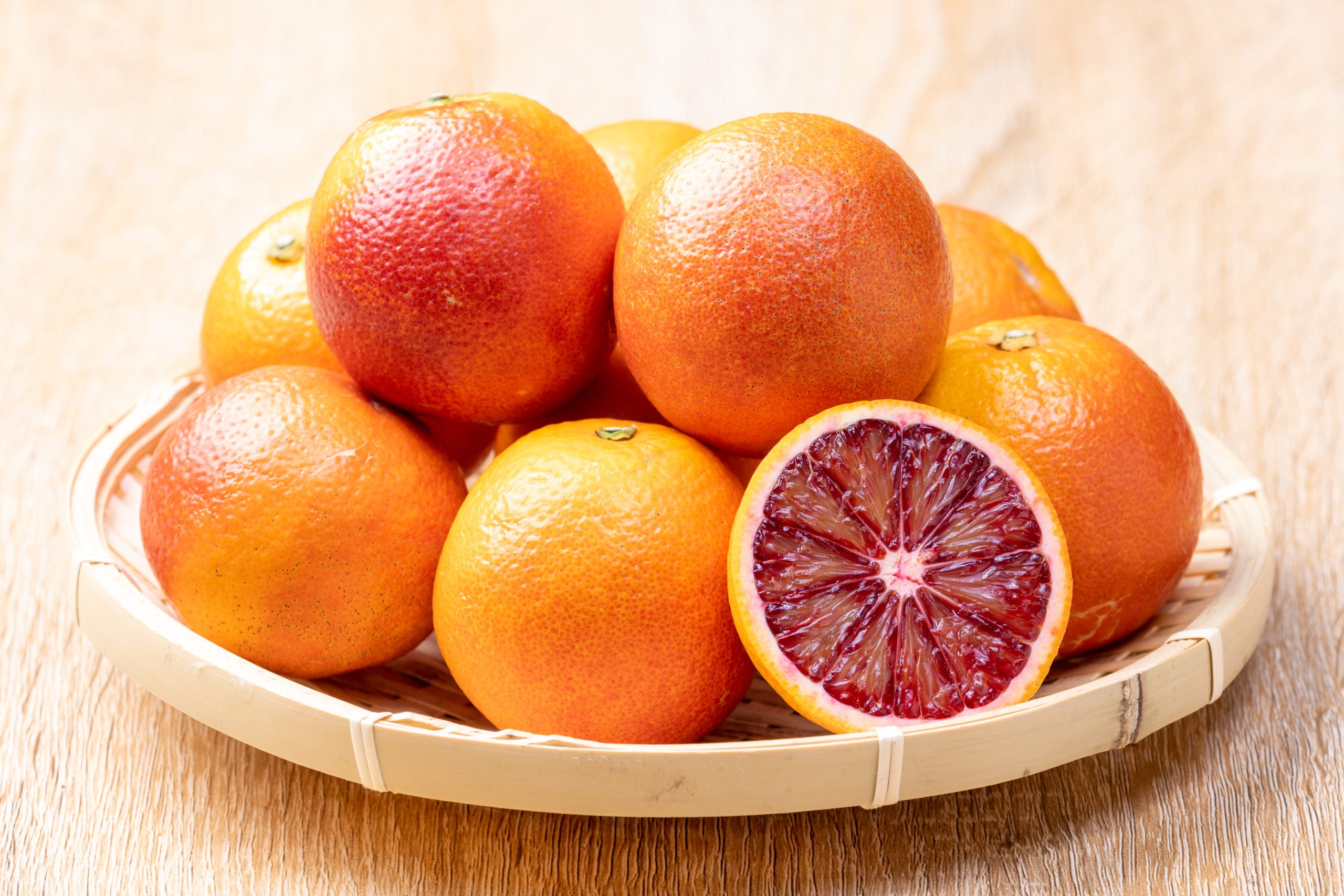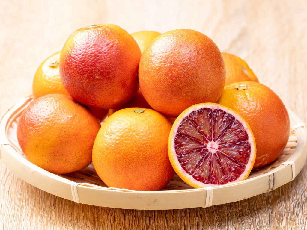 紅い果肉は「アントシアニン」によるもので、一般的なオレンジに比べて抗酸化効果が強く、ビタミンCも1.5倍多く含んでおり、疲労回復やアンチエイジング効果が期待できます。